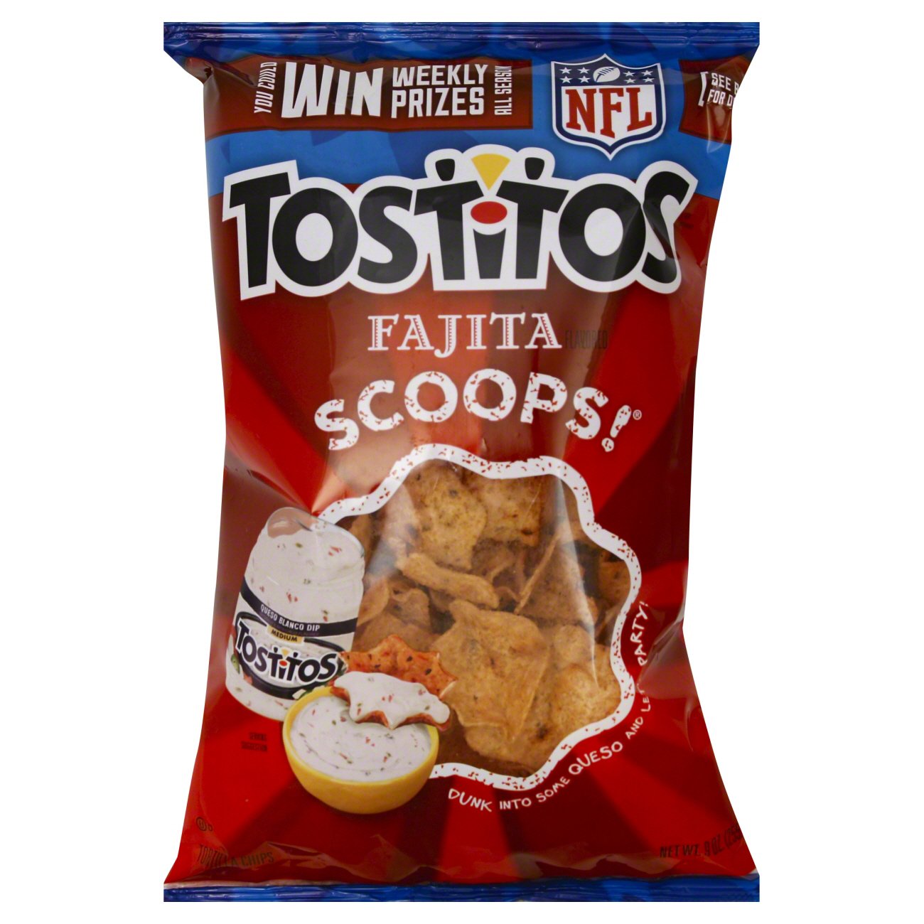 Tostitos ® smooth & cheesy dip. Contains less than 2% of: 5 chips (28g) log food: Add in tostitos ® salsa con queso. 2 tbsp (31g) log food: For more information about frito lay please visit fritolay.com. Original restaurant style tortilla chips. This awesomeness of a snack has no rules and everyone can use their creativity to prepare it their own way as long as tostitos are used. Personalized health review for tostitos scoops! Ingredients corn, vegetable oil (corn, canola, and/or sunflower oil), maltodextrin (made from corn), salt, sugar, natural flavors, dextrose, sour cream (cultured cream, skim milk), whey, spice, and yeast extract. The bite size chips are smaller. Nothing pairs better with tostitos ® tortilla chips, except maybe a group of friends. Guarantee fresh until printed date or this snack's on us.